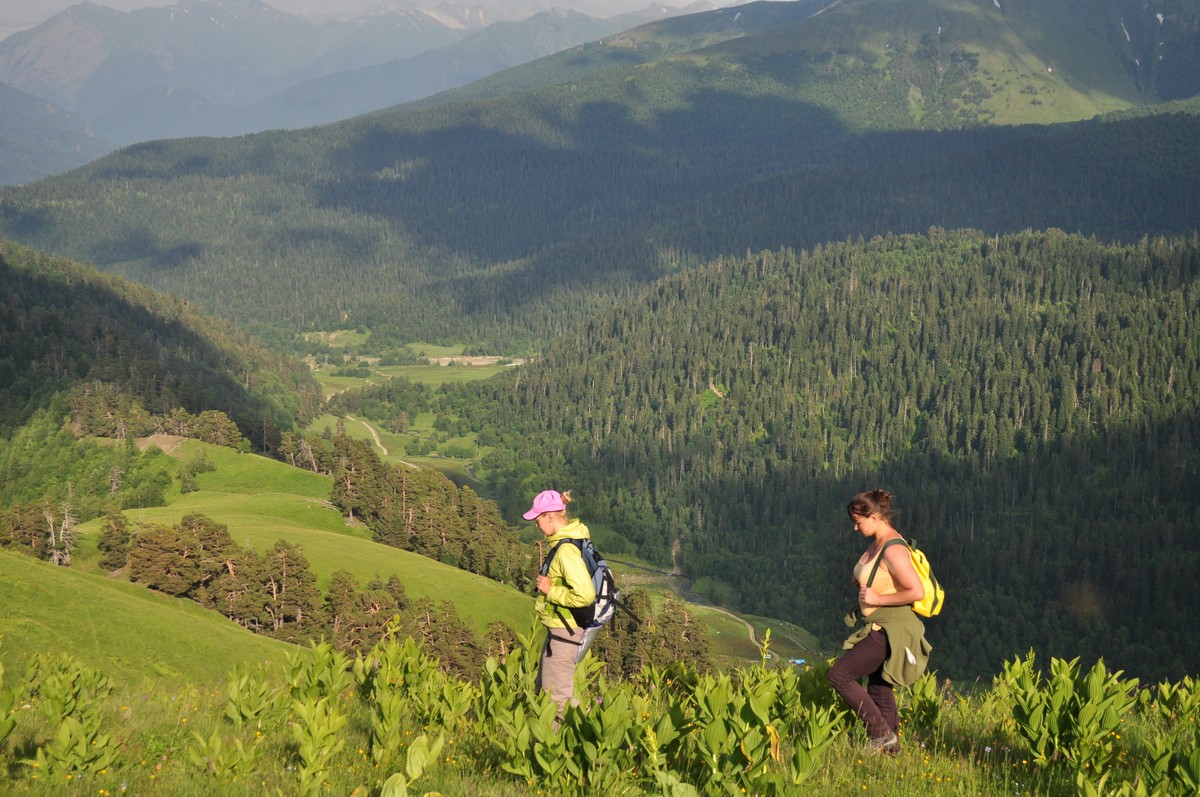 На Кавказе комфортно ходить в брюках и футболках, шорты и майки брать не рекомендуется.