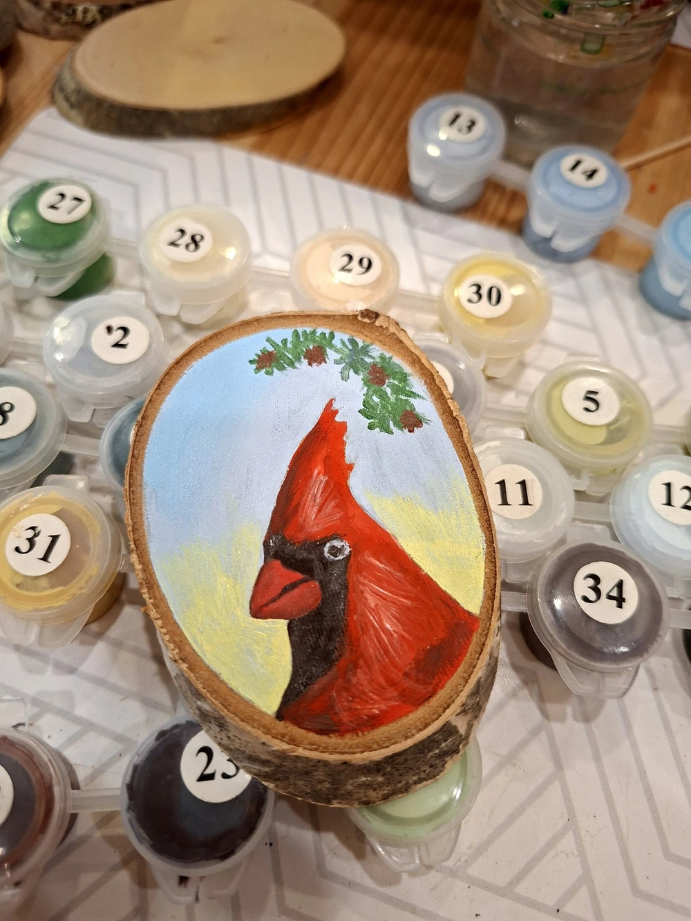 Рисуем птиц карельского леса на спиле дерева