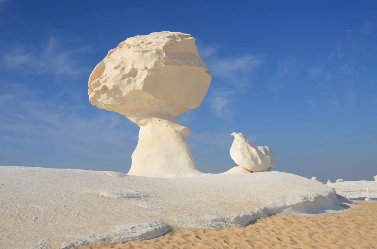 Приглашаем вас ненадолго оставить шум Каира и отправиться в сердце Сахары на встречу с сюрреалистическими мирами, созданными лучшим художником и скульптором — природой. Вас ждут максимально контрастные пейзажи: в Белой пустыне — белоснежные карстовые изваяния, причудливо застывшие в форме грибов, птиц, шаров, а в Чёрной — покрытые застывшей лавой и пеплом древнего вулкана Туфу мрачные конусы. Вы сможете стать частью этого фантастического уголка, оставшись ночевать в кемпинге среди дюн. Обратите внимание: это видовая поездка с англоязычным водителем без экскурсионной составляющей.