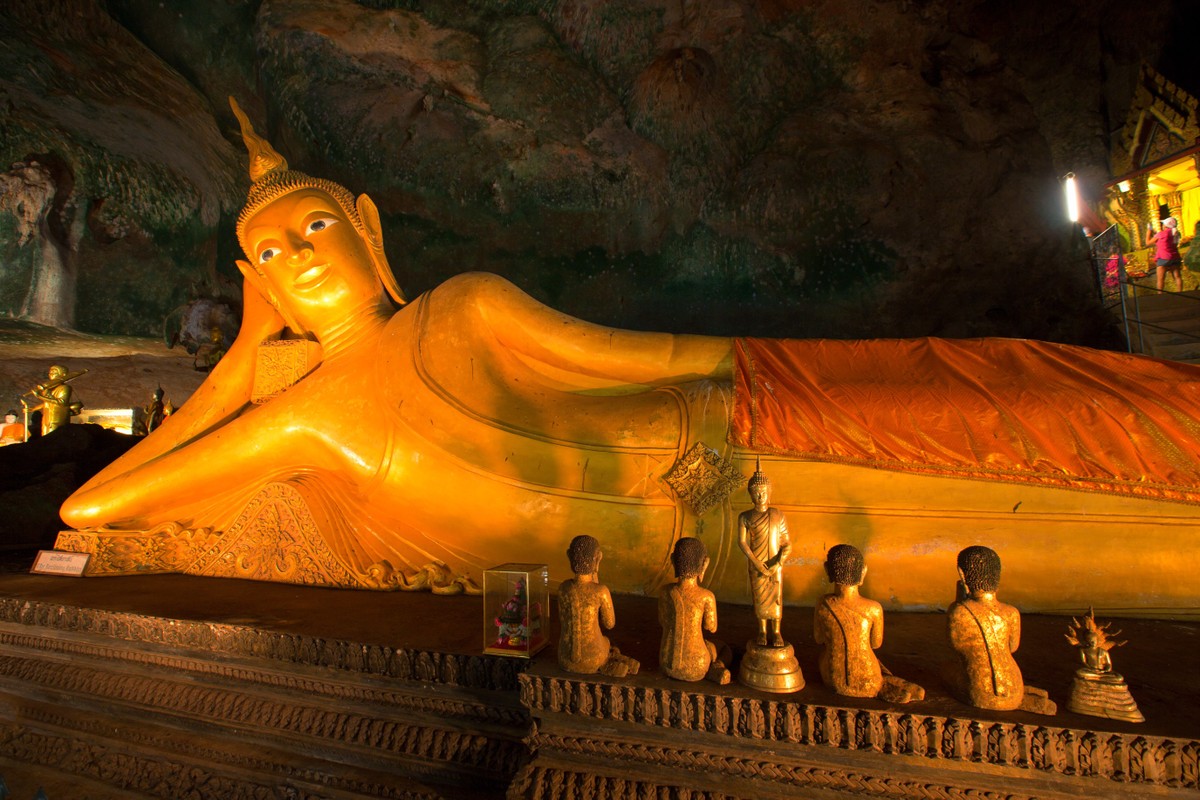Экскурсия начнется с посещения пещерного храма Wat Suwan Kuha. Вы увидите пятнадцатиметровую статую лежащего Золотого Будды, погрузитесь в умиротворенную атмосферу священного места и ощутите его силу и красоту. Среди путешественников Wat Suwan Kuha известен как Храм обезьян — на его территории обитают пять разных стай длиннохвостых макак. Вы сможете понаблюдать за жестами, привычками и повадками обезьян в дикой природе и, при желании, покормить их бананами и орешками, которые тут же продают тайские бабушки.