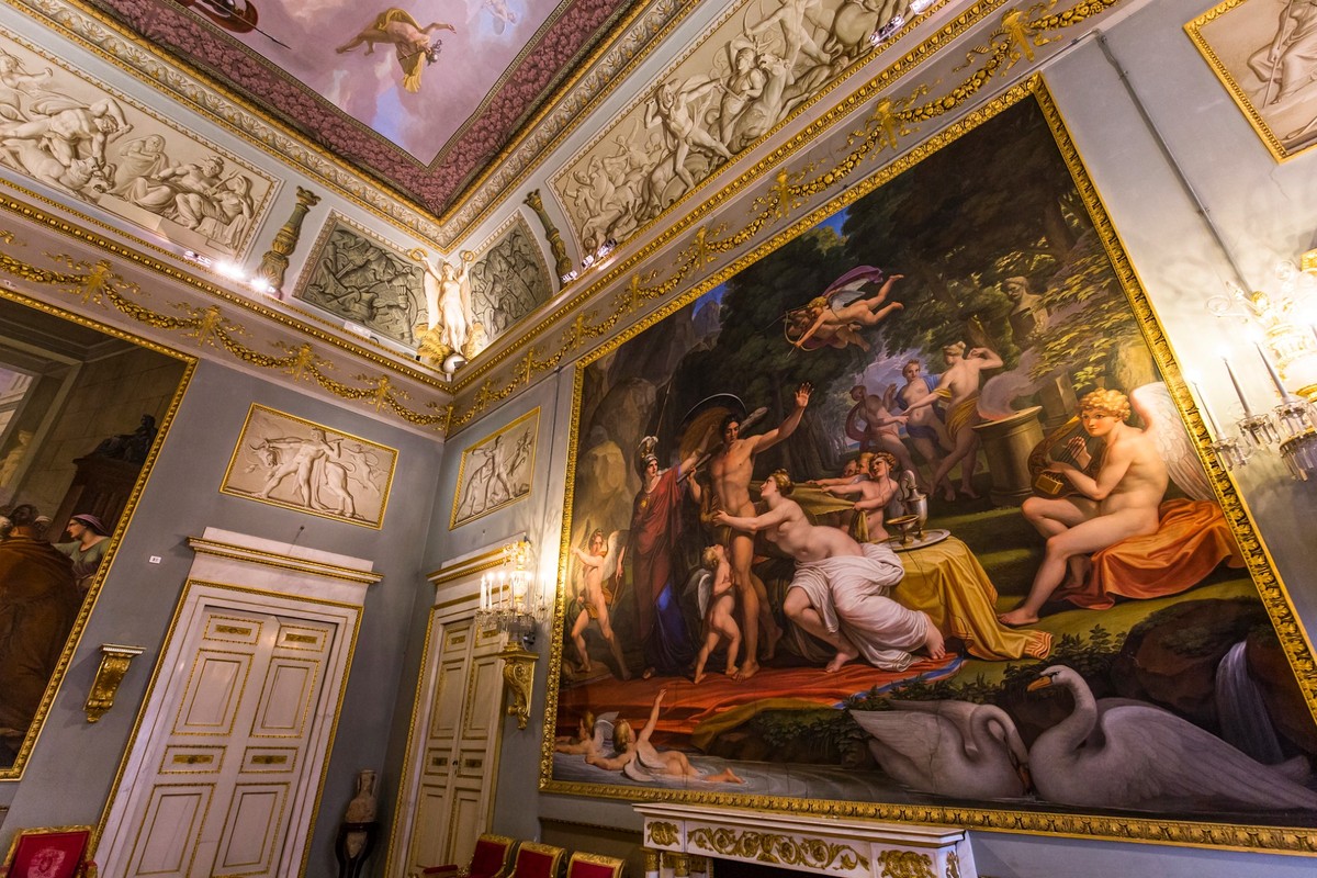 Внутри вы поразитесь богатому интерьеру: белой и золотистой лепнине, ценным гобеленам, шелковым обоям и необычной подлинной мебели. Знаменитые Медичи перевезли сюда все свои коллекции: собрание произведений искусства, скульптур, изделий из серебра и драгоценных камней. Только в Палатинской галерее находится не менее 500 полотен! Вы увидите 11 картин Рафаэля, работы Тициана, Боттичелли, Караваджо, Рубенса. Осмотрите изящные фрески на потолках, японские и французские фарфоровые вазы, столы с флорентийской мозаикой. Вам откроется множество интересных фактов не только о музеях дворца, но также о его увлекательной судьбе и жителях.