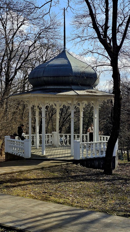 Ессентуки с душой: как один день с гидом Сергеем изменил наше представление о курорте. Это было наше первое путешествие на Кавминводы. Неделя в Архызе подарила нам горный воздух, снег и адреналин, а потом захотелось чего-то иного - тепла, истории, размеренности и красоты. И мы оказались в Пятигорске, а оттуда днем 8 марта, в праздник весны и красоты, поехали в Ессентуки. Хотелось познакомиться с городом, вкусно поесть и вечером попасть на концерт Александра Серова в зал имени Шаляпина. Но главным событием дня стала встреча с гидом Сергеем. Четыре часа экскурсии пролетели незаметно: часть пути на его автомобиле, часть пешком по уютным улочкам. Это не была сухая «обзорка» из учебника. Сергей показал нам свой личный город. Маршрут авторский, но каждый факт выверен историей. В его рассказе удивительно сплелись советская эпоха и дореволюционное прошлое, быт курортного города и географические особенности местности. Начали с галереи «Пятитысячник» в санатории «Виктория», крупнейшей в Европе, способной принять до 5000 человек в смену. Масштаб впечатляет! Удалось не только попить минеральной воды, но и немного послушать праздничный концерт духовного оркестра. Затем Сергей привёз нас к храмовому комплексу «Рио-де-Кавказ» на Боргустанском шоссе. Это целый уникальный ансамбль: 22-метровая фигура Христа из белого мрамора (самая высокая в православном мире!), храм Петра и Павла, Гефсиманский сад, Аллея философов, Венчальные ворота, несколько церквей и часовен. В часовне Петра и Февронии Муромских мы сами позвонили в колокола, это было волшебно! А с площадки у подножия открывается панорама на Кавказский хребет и Эльбрус. Мы очень хотели увидеть двуглавую вершину, но она, как капризная дама, укрылась в облаках. Вспомнили анекдот про Николая I, который несколько дней ждал, чтобы увидеть Арарат, но гора не открылась. Он сказал: «Если Арарат не хочет меня видеть, то и я не хочу его видеть». Но мы не Николай I, мы не обиделись, мы ещё вернёмся на КМВ). После комплекса мы вернулись в центр города и оказались у галереи № 17 в Курортном парке. Это старейшее каменное здание курорта, памятник архитектуры в английском стиле: готические окна, башенки, особая атмосфера. В галерею источника № 4 в Верхнем парке не успели зайти внутрь, но впечатления это не испортило. Сергей заранее подсказал взять ёмкость для воды. У меня была спортивная бутылка с крышкой (очень удобно). Попробовали всю минералку в доступных галереях. Отдельное впечатление - это грязелечебница имени Семашко. Монументальный портик с восемью ионическими колоннами, жёлтый кисловодский камень, черепичная кровля в римском стиле. Перед входом стоят скульптуры львов, прижимающих лапами змей. Сергей рассказал, что именно здесь снимали сцену из «12 стульев», где Киса Воробьянинов произносит: «Mesdames et Messieurs, je ne mange pas six jours». А самое главное оказалось за центральным фасадом: Сергей показал нам внутренний двор, красивейшее пространство с арками и парадной лестницей в стиле античных терм. Свет, камень, симметрия. Ощущение музея под открытым небом. Мы не удержались и сделали кадры). Прогулялись мы и по тихим купеческим улочкам, где время будто замедлилось, и по неспешным туристическим променадам в центре, почувствовали настоящий ритм курортной жизни. Сергей - гид с большой буквы. Он не просто рассказывал, он вовлекал. Да