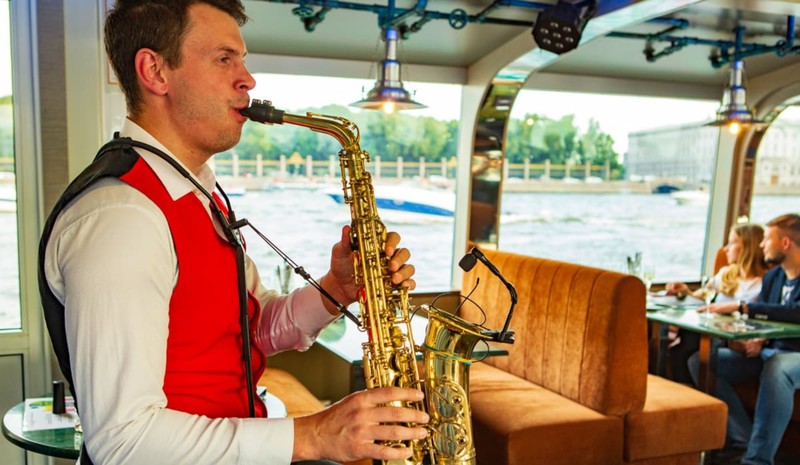 Пройти по парадной Неве в вечернее время, обогнуть Каменный и Крестовский острова, доплыть до «Газпром Арены» и увидеть «Лахта-центр» с воды — отличный способ провести время в Петербурге. Вдобавок к изумительным видам, вы насладитесь живой музыкой и, если захотите, поужинаете в ресторане прямо на борту теплохода.