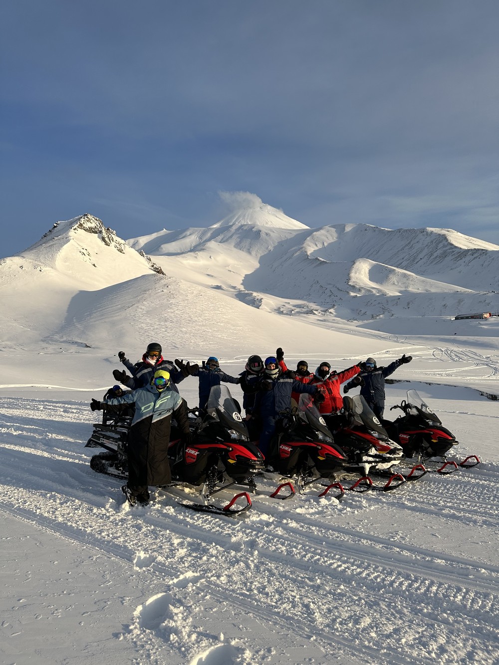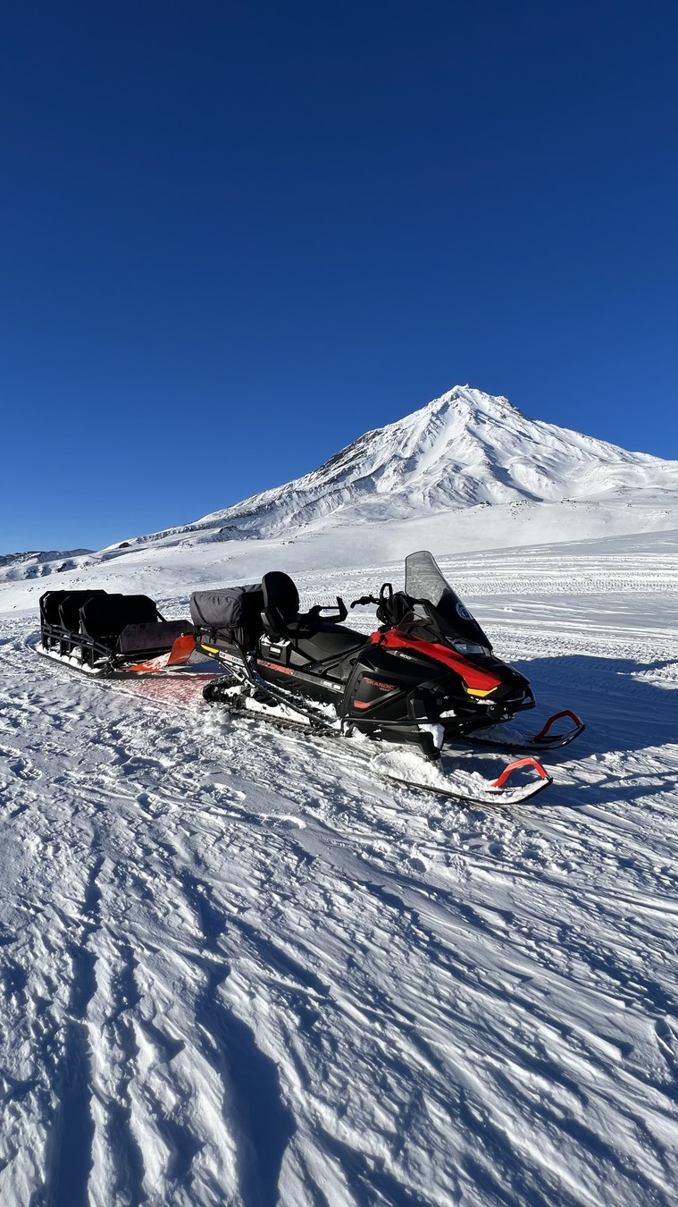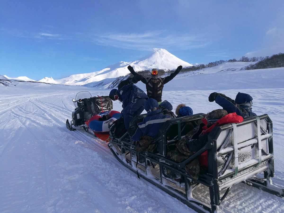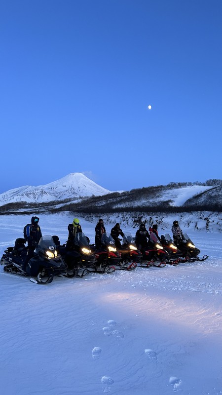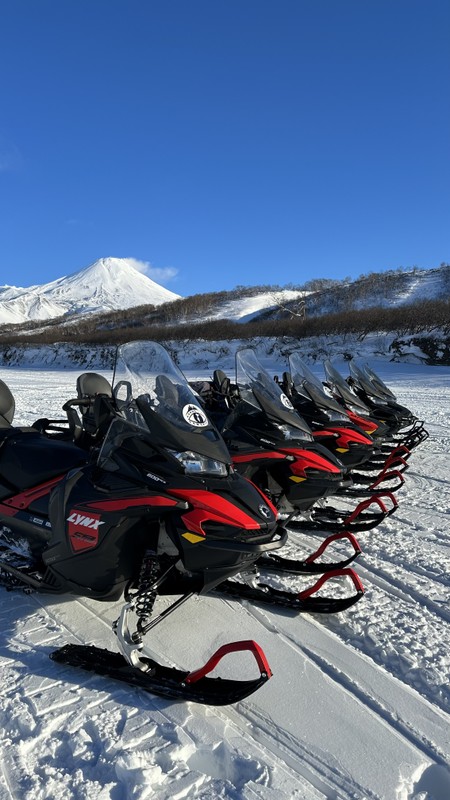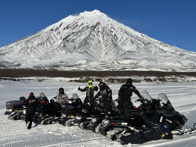 11:00 — прибытие в место старта, экипировка, инструктаж и отправление на снегоходе. По пути к вулканам остановки на Сухой реке