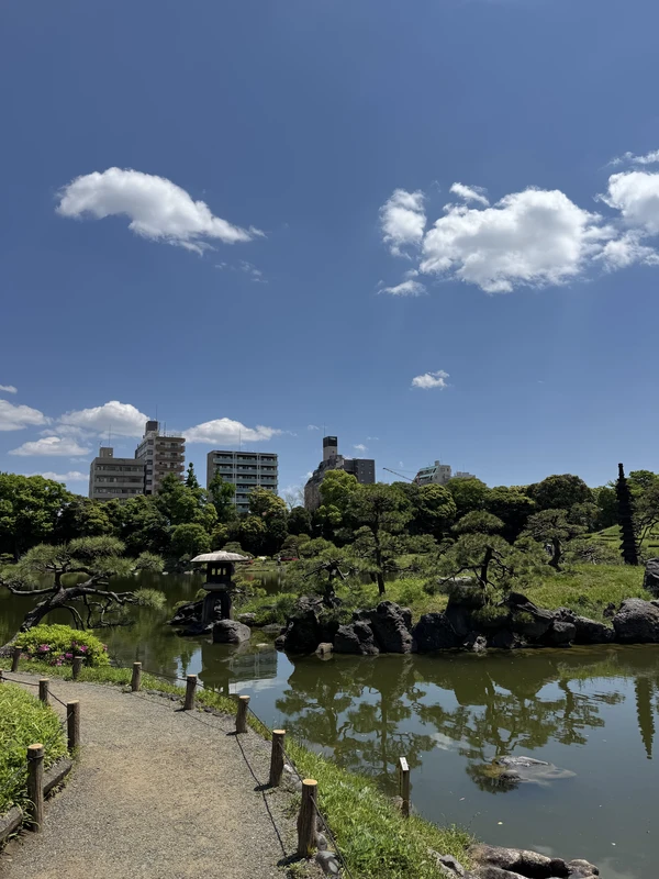 Традиционный японский сад Киёсуми с прудом, карпами кои, каменными тропами по воде, павильонами и сезонными пейзажами. Чудесно подходит для спокойных прогулок и наблюдения за птицами.